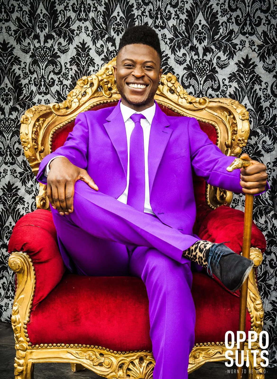 TAFKAO: The Artist Formerly Known as Opposuits. Dit Paarse Purple Prince Opposuit combineert de extravaganza van onze avantgardistische rock-pop-prins met de sharp dressing skills van een Britse Gentleman. Ga paars en je weet een ding zeker, niemand op het feest draagt jouw kleur en iedereen zal je waarderen om jouw dappere en stijlvolle keuze. De broek, het perfect afgestikte jasje en de bijpassende stropdas maken jouw big entrance helemaal af.