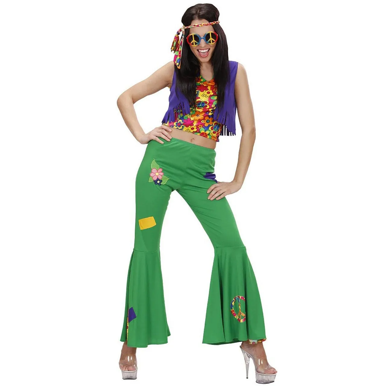 In het Woodstock hippie meisje dance away kostuum doe je niet onder voor de festivalganger van zo’n kleine vijftig jaar geleden. De flower power komt weer helemaal tot leven als jij dit pak aantrekt. De kleding is lekker kleurig en natuurlijk voorzien van de accessoires die het helemaal af maken zoals een vest en een hoofdband. Let the sunshine in en pak iedereen helemaal in met je kennis van de beroemde hits uit de sixties.